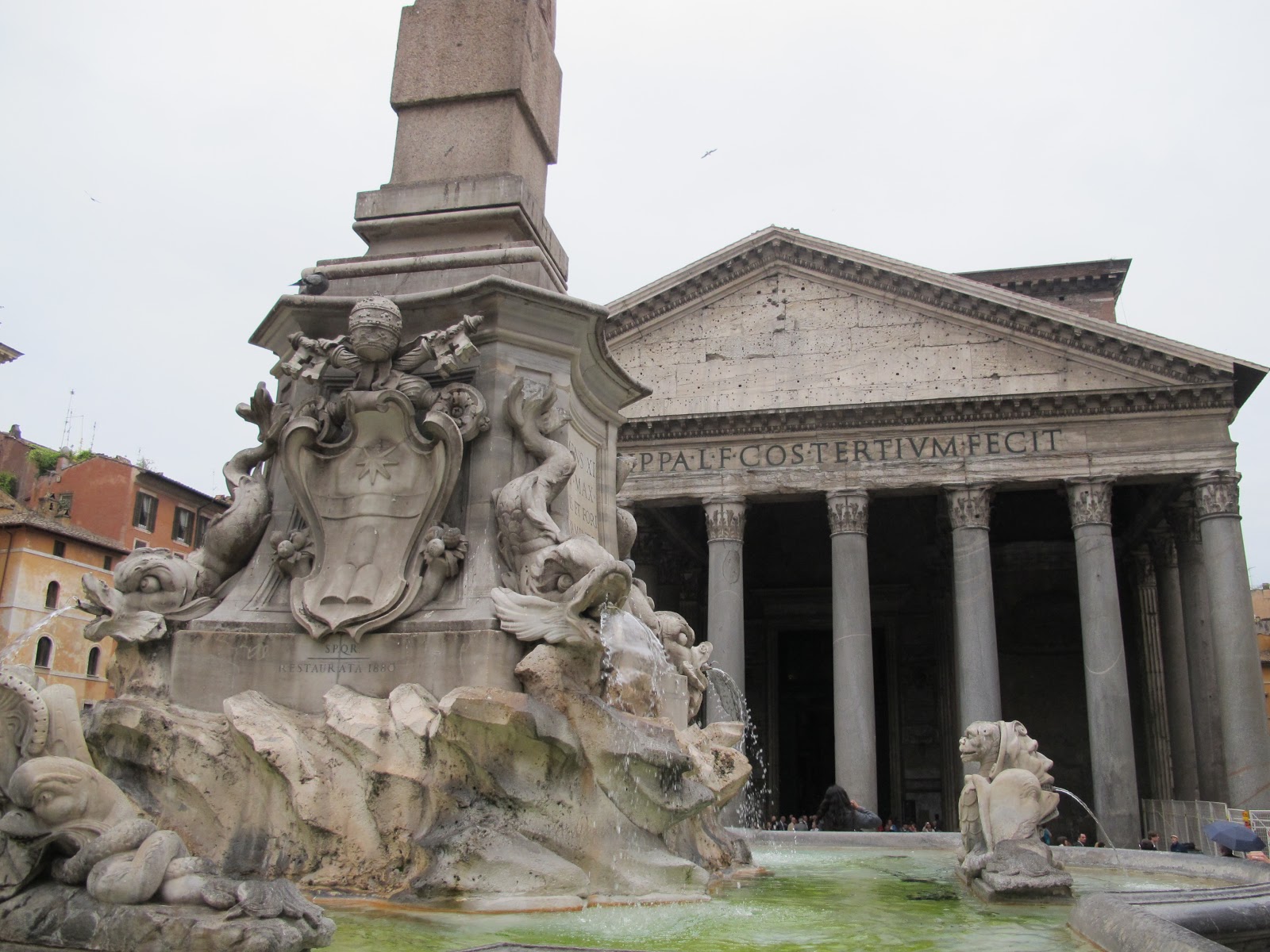 Na Piazza della Rotonda, a Fontana del Pantheon, com o Obelisco que originalmente foi construído por Ramsés II para o Templo de Ra, trazido de Heliópolis após vitória romana sobre o Egito.